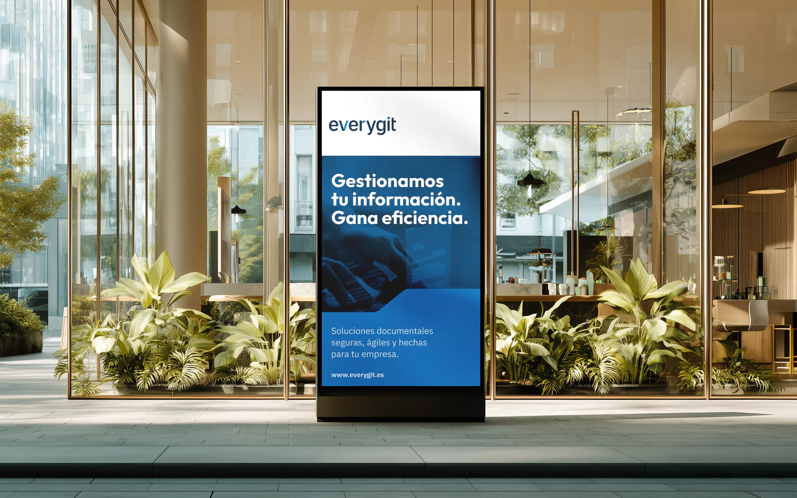 En un mercado donde la confianza lo es todo, EveryGit, empresa de gestión documental digital y física con sede en Madrid, necesitaba un logotipo y las bases de una identidad que transmitieran profesionalidad desde el primer momento. El proyecto se desarrolló bajo restricciones de tiempo significativas, requiriendo un enfoque directo y efectivo.